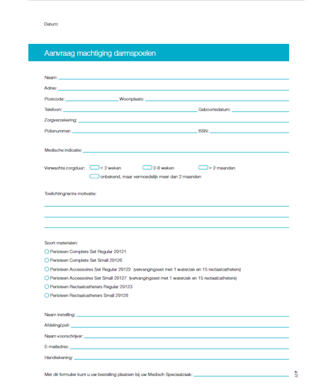 Met Peristeen Plus worden de darmen effectief geleegd, waardoor ongewild verlies van ontlasting wordt voorkomen. Deze website geeft u informatie over darmspoelen met behulp van het Peristeen Plus systeem. De informatie die u hier vindt kunt u met uw arts bespreken. Bij vragen kunt u ook contact opnemen met onze productspecialisten via het gratis nummer 0800 022 98 98.